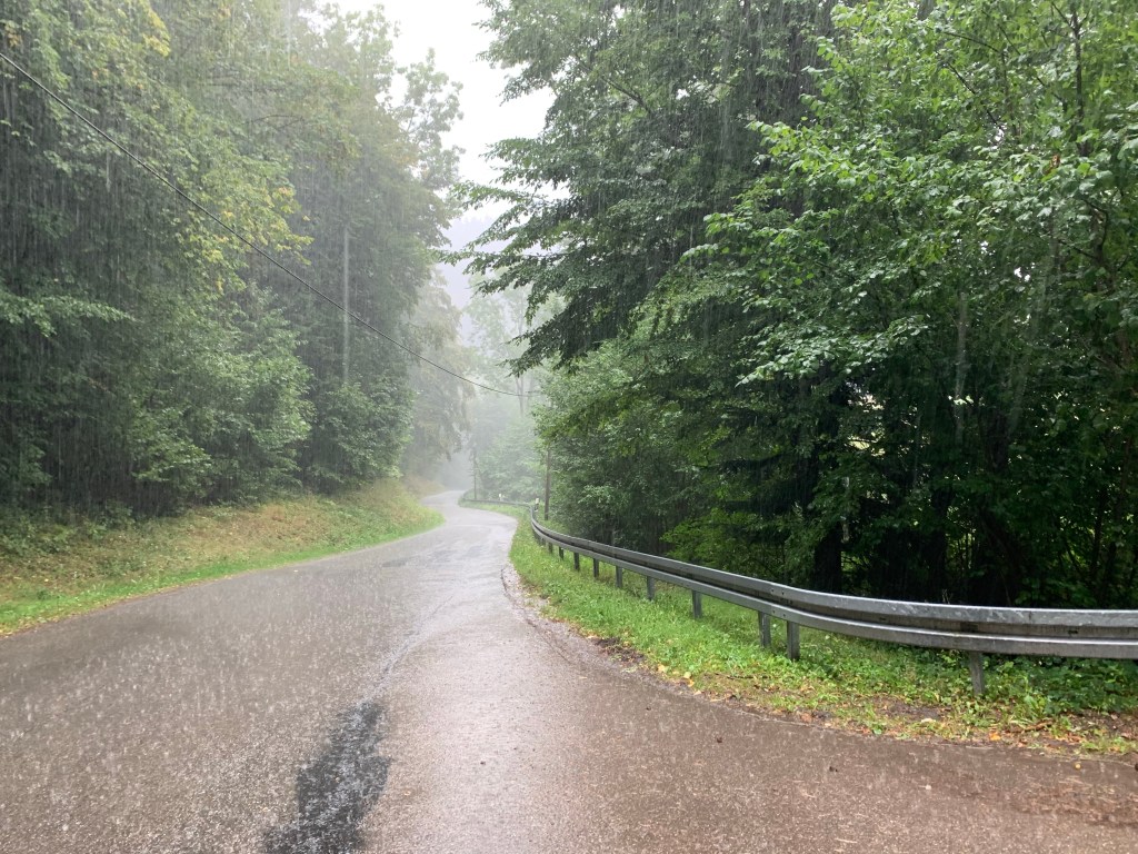 Wir da also heute mit den Rädern zum Leopoldstollen hoch. Wollten vor der Regenfront noch den badish moon rising abfahren. Die Wetterapp sagte mit 50% Wahrscheinlichkeit kommen wir vor der Regenfront durch.