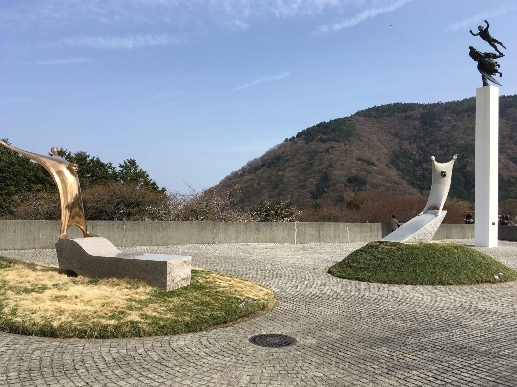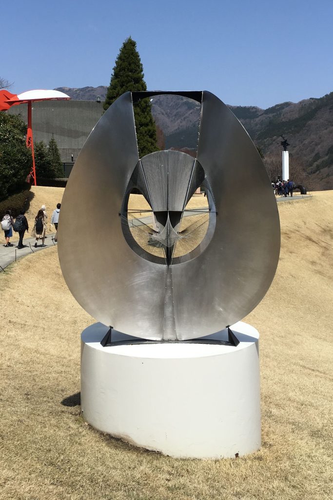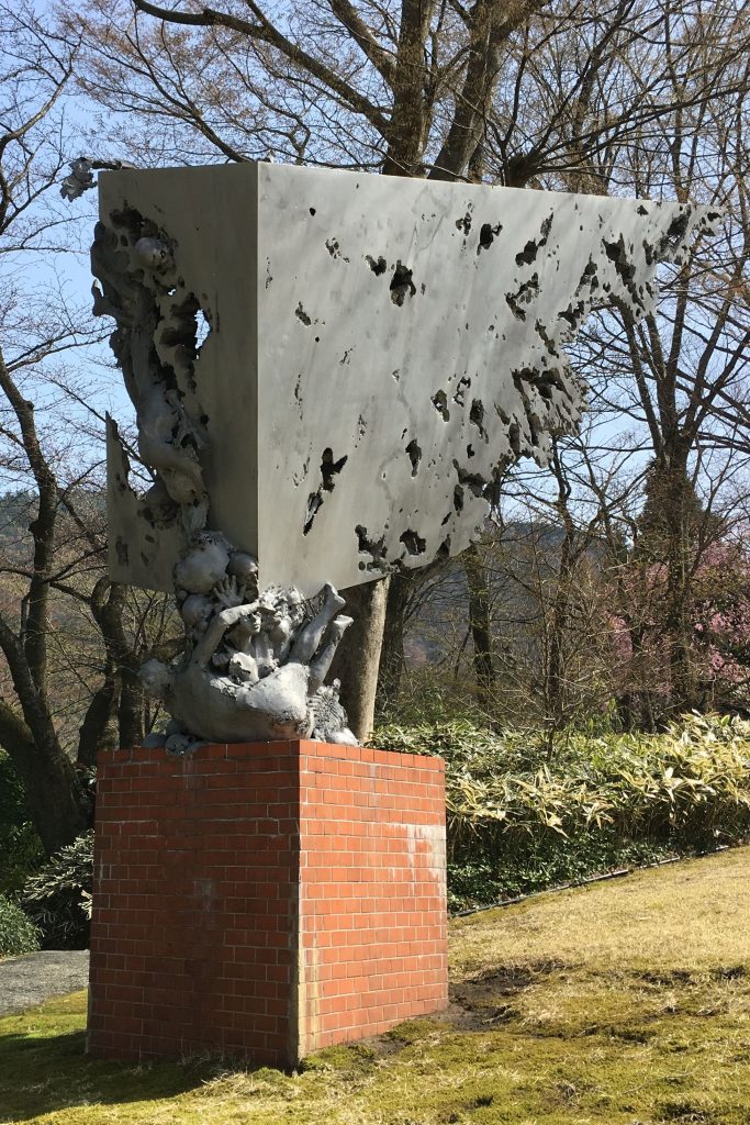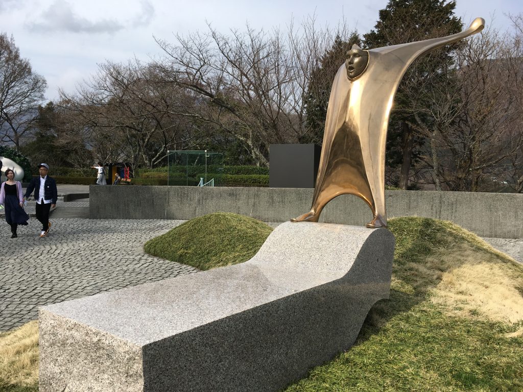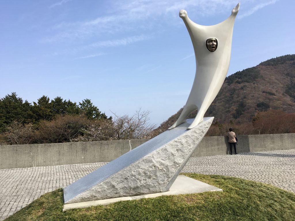 Zur Hakone Rundreise folgt man einfach dem nicht enden wollenden Strom von Menschen. Wenn man sich was anschauen will verlässt man den Strom und wenn man weiter will fügt man sich wieder ein. Am Anfang brauchten Birgit und die Jungs noch ein wenig Mut sich in einen vollen Zug zu quetschen. Eigentlich konnten die Türen sich schon nicht mehr schließen. Wer aber schon ein mal zur Hauptverkehrszeit in Tokyo U-Bahn gefahren ist weiß, ein paar Leute gehen immer noch rein. Und so passten auch nach uns noch Leute in die Bahn. Los ging’s bergauf. Unser erster Stopp war das Hakone Open Air Museum mit vielen Skulpturen der Modernen Kunst und einer großen Picasso Ausstellung.
