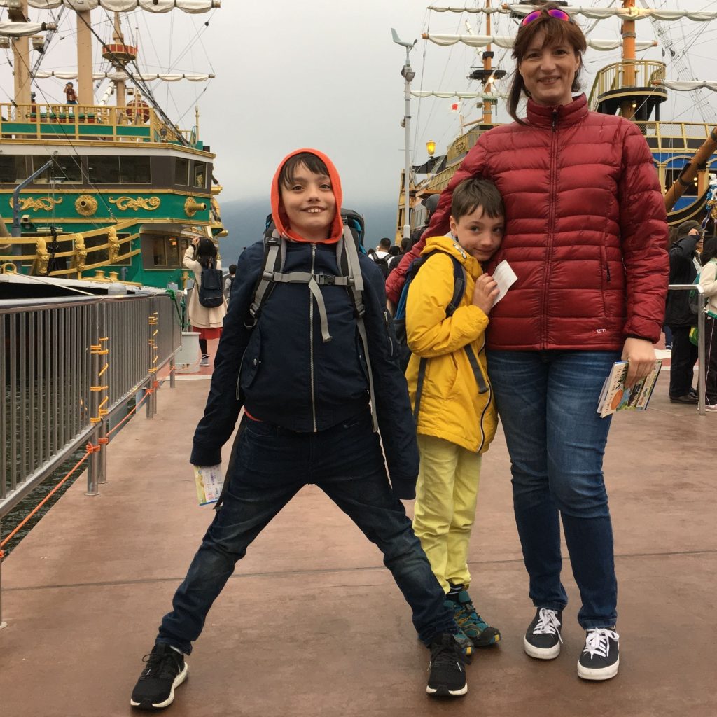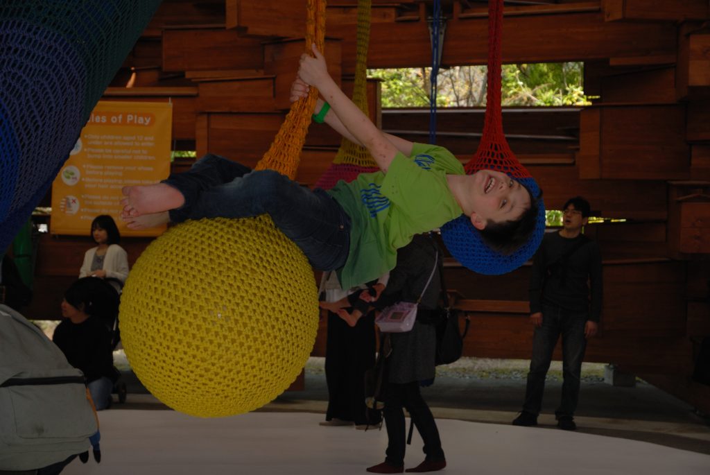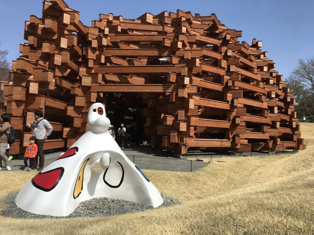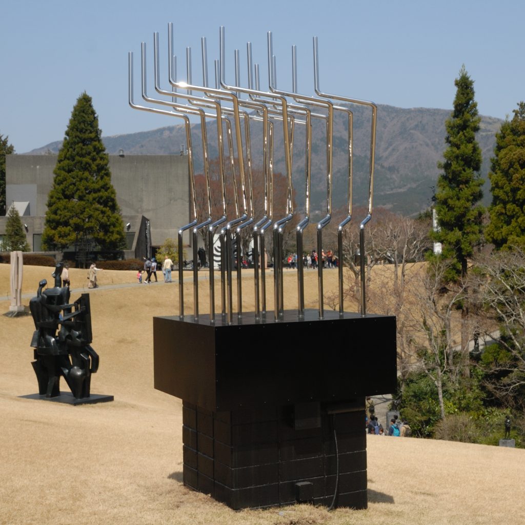 Zur Hakone Rundreise folgt man einfach dem nicht enden wollenden Strom von Menschen. Wenn man sich was anschauen will verlässt man den Strom und wenn man weiter will fügt man sich wieder ein. Am Anfang brauchten Birgit und die Jungs noch ein wenig Mut sich in einen vollen Zug zu quetschen. Eigentlich konnten die Türen sich schon nicht mehr schließen. Wer aber schon ein mal zur Hauptverkehrszeit in Tokyo U-Bahn gefahren ist weiß, ein paar Leute gehen immer noch rein. Und so passten auch nach uns noch Leute in die Bahn. Los ging’s bergauf. Unser erster Stopp war das Hakone Open Air Museum mit vielen Skulpturen der Modernen Kunst und einer großen Picasso Ausstellung.