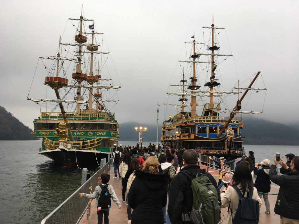 Dort mit einem Sieht-aus-wie-Priatenschiff über den See nach Hakone. Vorbei am berühmten Schrein.