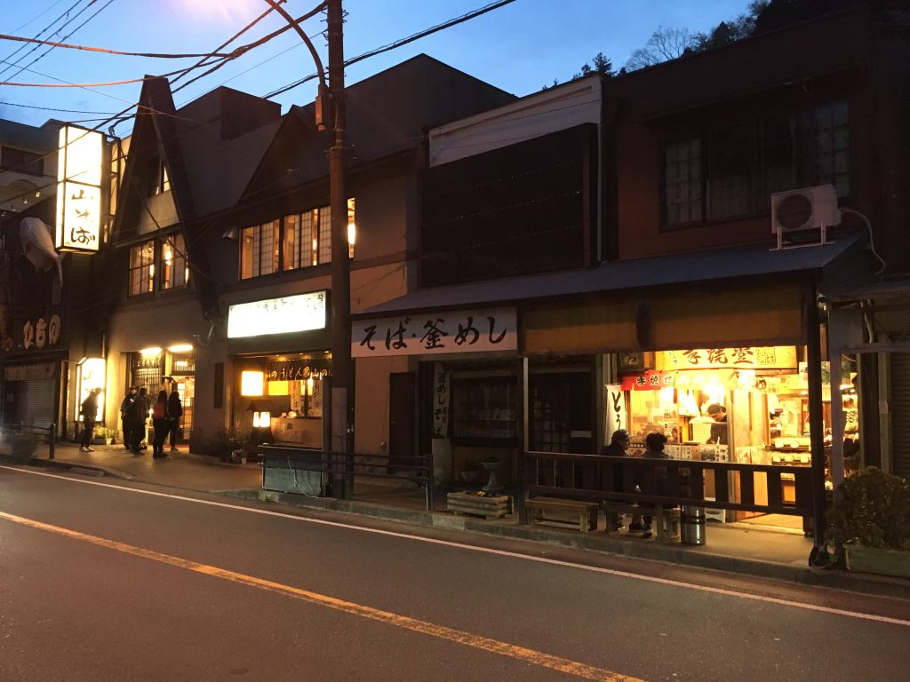 Nur das Wetter hat heute nicht 100% mitgespielt. Während wir im Museum noch blauen Himmel und Sonnenschein hatten, wurde unser Sternchen über dem See von Wolken verdeckt. So blieb uns der fantastische Blick auf Mt. Fuji erspart. Nach Hakone Yumoto sind wir mit dem Bus gefahren. Zu Abend hatten wir Soba (Buchweizennudeln). Mussten ganz schön schnell essen, weil unser kleines japanische Lokal schon um 19:00 Uhr schließen wollte.