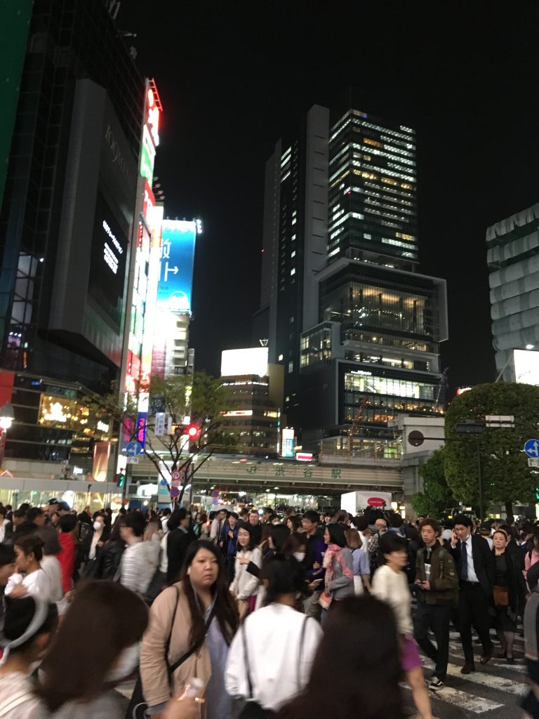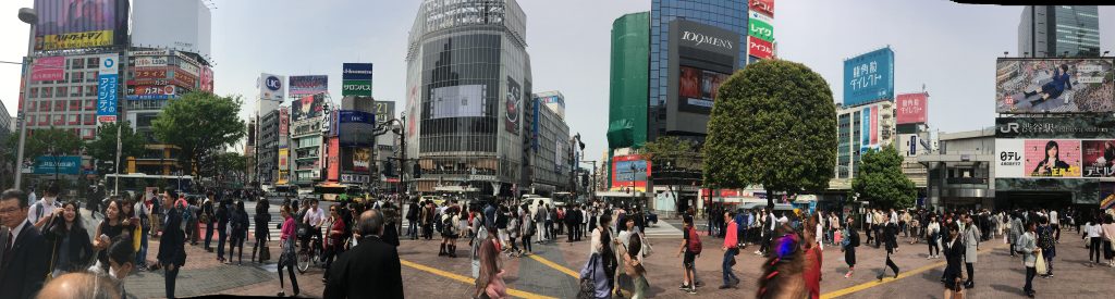 Heute wollten wir Shibuya unsicher machen. Nachdem wir zunächst den falschen Bahnhofsausgang benutzt hatten, fanden wir dann doch das richtige Hochhaus mit den vielen Restaurants im sechsten und siebten Stock. Auf dem Weg dorthin wären wir fast im Lindt Shop gelandet. Vorletzte Chance auf Ostern. Im sechsten Stock hatten wir dann wieder die Qual der Wahl. Mit den Entscheidungskriterien sind wir mittlerweile sehr pragmatisch. Japanisch soll es sein (Nudeln, Pizza etc. gibt es zu Hause) und die Wartezeit gering. So landeten wir in einem Restaurant mit Schweineschnitzeln japanischer Art. Sehr köstlich. Muss jede Menge Zucker in der Panade gewesen sein. Frisch gestärkt macht shoppen auch viel mehr Spaß. Birgit kam auf dem Weg ach unten nicht an einer tollen Kopfbedeckung vorbei. Vielleicht gibt es ja in den nächsten Tagen noch ein Bild davon. Wieder auf der Strasse fühlten wir uns stark genug für die verrückteste Kreuzung der Welt: Shibuya Crossing. Einmal rings herum und dann in den 109 for Men.