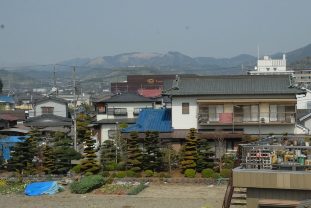 Bei bestem Wetter sieht man vom Zug aus Mt. Fuji. Heute hatte sich der Berg in Wolken gehüllt. Leider. So mussten wir mit dem Bild auf dem Werbeprospekt vorlieb nehmen. Noch ein Grund, einmal wiederzukommen.