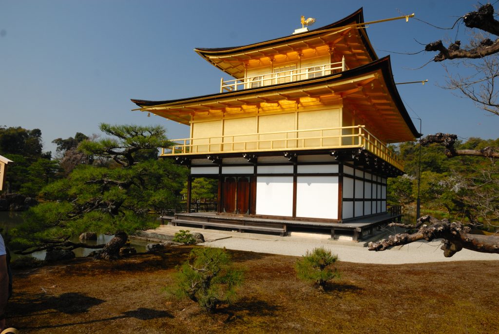 Unser letztes Ziel in Kyoto war Kinkaku-ji, der goldene Pavillon, erbaut im 14 Jahrhundert, in den Fünfzigern des letzten Jahrhunderts von einem Mönch angezündet und neu resauriert. Der Tempel ist mit 20 Kilogramm Gold vergoldet und zieht täglich sicherlich mehrere tausend Menschen an.