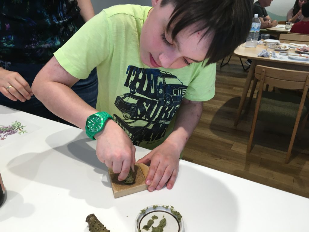 Wasabi kann man klassisch durch Reiben auf einer Hai-Haut herstellen.