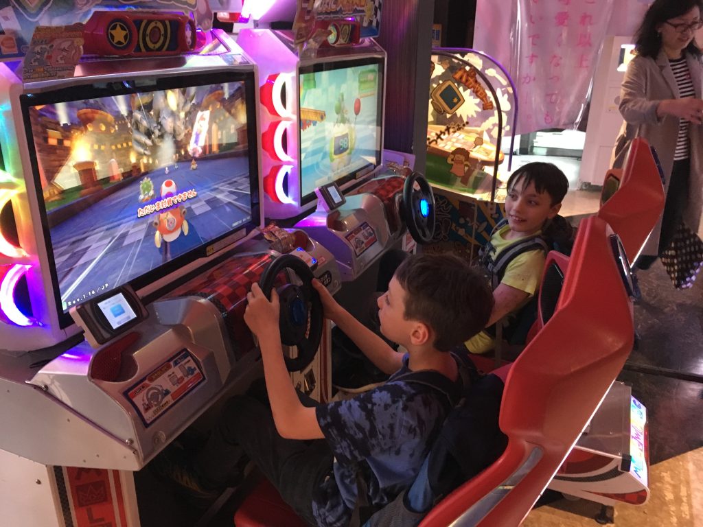 Im AKB48 waren wir nicht und auch ein Home Cafè mit dienstmädchen-verkleideter Bedienung haben wir gemieden. Aber an einer Sega Spielhölle sind wir nicht vorbeigekommen. Die Jungs haben zwei Runden Super-Mario Rennen gefahren. Ein Glück, das Kleingeld war schnell alle. Sonst würden wir wohl jetzt noch dort sein.