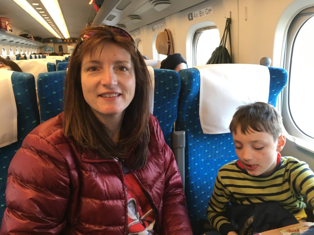 Und bis jetzt klappt alles wie am Schnürchen. Pocket WiFi ausgefasst und fünf Minuten später Online gewesen. Auch der sieben Tage Shinkansen Rail Pass war kein Problem. Schnell noch ein paar Platzkarten für den Zug nach Kyoto und ab per Monorail zum Shinkansen. Der Zug war auf der rechten Seite komplett ausgebucht. Die Züge fahren im sieben Minuten Takt nach Osaka. Alle sieben Minuten ein Schnellzug der mit mehr als 200 durch die Landschaft jagt. Und das auf die Minute pünktlich. Die sprichwörtliche Hilfsbereitschaft der Japaner erlebt man von der ersten Minute an. Bei der Passkontrolle, beim Ausfassen der Shinkansen Tickets, in der Monorail und auf dem Bahnsteig. Japaner helfen unaufgefordert und räumen sogar ihren Platz, damit wir als Familie zusammen sitzen können. Jetzt haben wir alle wie unsere Mitreisenden unsere Bento Box verdrückt.