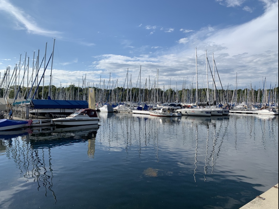 Unser erster Tag als Seemannschaft in der Seegelschule Hasse. Kurz vor neun treffen wir uns im Segel – Motorboot Club FN. Erste Überraschung des Tages: Die Prüferin vom DMYV ist auch schon da. Wir machen das Boot klar zum Auslaufen. und schon geht es aus dem Hafen. Und klar, es regnet, was sonst. Beim letzten mal dachte ich Tom ist der Schlechtwettermagnet. Da aber letzte Woche gutes Wetter war, hatte ich wohl die Wolken im Gepäck.