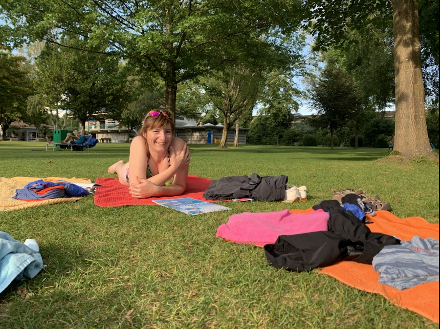 Zur Mittagspause hängen wir uns über den Tisch zum Trocknen. Und schon geht es wieder raus. Pipo fährt uns als Steuermann aus den Hafen.